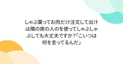 しゃぶ葉ってお肉だけ注文して出汁は隣の席の人のを使ってしゃぶしゃぶしても大丈夫ですか?「こいつは何を言ってるんだ」