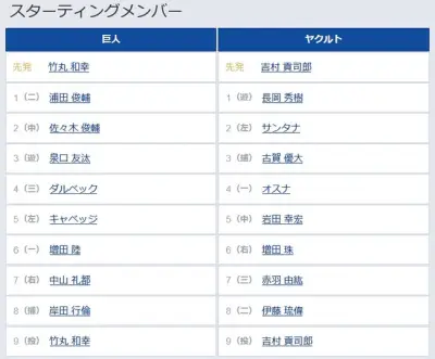 【巨人対ヤクルト1回戦】2(中) 佐々木 俊輔 7(右) 中山 礼都