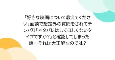 「好きな映画について教えてください」面談で想定外の質問をされてテンパり「ネタバレはしてほしくないタイプですか?」と確認してしまった話…それは大正解なのでは?
