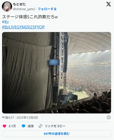 【悲報】B’zのライブ、座席がヤバすぎて炎上wwwwwww
