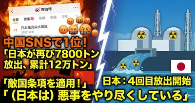 【笑】中国SNSで1位「日本が再び7800トンの核汚染水を海に放出、累計12万トン」「敵国条項を適用!」「(日本は)悪事をやり尽くしている」
