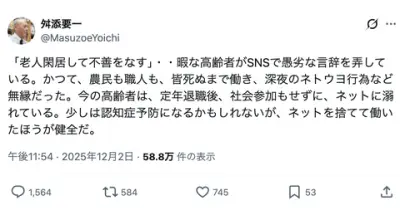 【悲報】舛添要一「暇な高齢者がSNSで愚劣な言辞を弄している。ネットを捨て働いた方が健全だ」