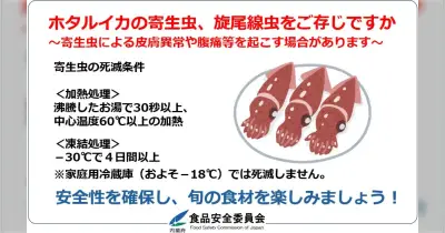 内閣府がホタルイカの生食について注意喚起、お店の刺身はしっかり冷凍処理等を行った物なので、自宅では適切な処理が必要