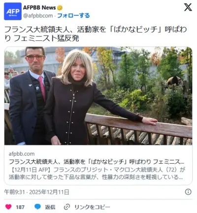 フランス大統領夫人、活動家を「ばかなビッチ」呼ばわり フェミニスト猛反発