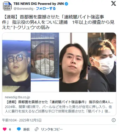 【速報】首都圏を震撼させた「連続闇バイト強盗事件」 指示役の男4人をついに逮捕
