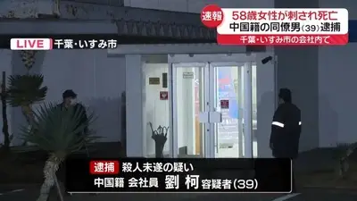 【速報】中国籍の同僚社員、日本人女性社員の顔面を複数回刺して逮捕