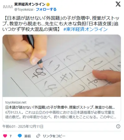 日本語が話せない「外国籍」の子が急増中、授業がストップ、教室から脱走も…先生にも大きな負担「日本語支援」追いつかず