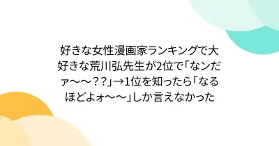 好きな女性漫画家ランキングで大好きな荒川弘先生が2位で「なンだァ〜〜??」→1位を知ったら「なるほどよォ~~」しか言えなかった