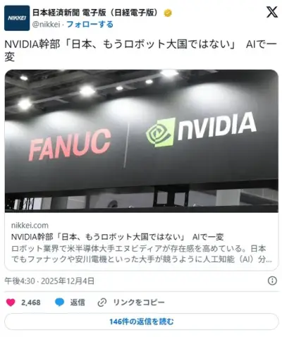来日したNVIDIA幹部「日本はもうロボット大国ではないですね」