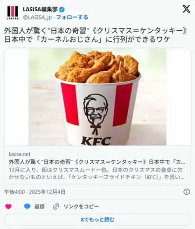アメリカ人「なんで日本人は聖なる夜(12月25日)にKFCを食べるの?」
