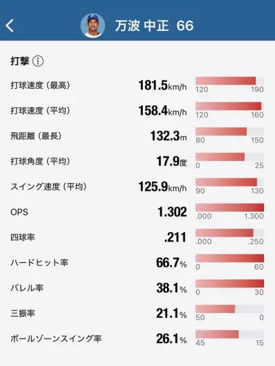 【画像】万波中正(.310 5本 OPS1.301)の打撃データ、とんでもない事になってしまう