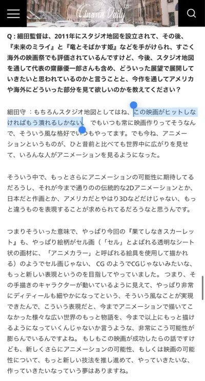 【悲報】果てしなきスカーレットの監督「この映画がヒットしなければスタジオは潰れるしかない」