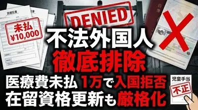【速報】高市政権、不法外国人を徹底排除「医療費20万以上未払、次回入国を厳格化」→「1万未払で入国拒否、在留資格更新の審査にも活用」「児童手当不正受給も判明、阻止する」