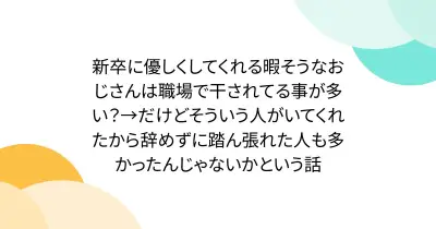 新卒に優しくしてくれる暇そうなおじさんは職場で干されてる事が多い?→だけどそういう人がいてくれたから辞めずに踏ん張れた人も多かったんじゃないかという話