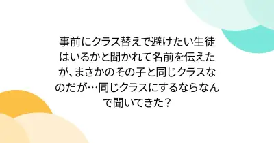 事前にクラス替えで避けたい生徒はいるかと聞かれて名前を伝えたが、まさかのその子と同じクラスなのだが…同じクラスにするならなんで聞いてきた?