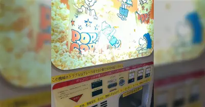 ポップコーンの自動販売機にしてはありえない不穏な文言が書かれている...→「窃盗犯はあえて警察に突き出さない」と宣言している忠告があまりに怖ろしすぎて「カタギの仕事じゃねぇな...」
