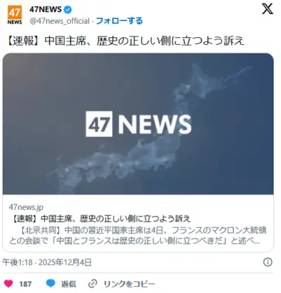 【失敗】中国外相「日本より深刻な危害」バロ外相「フランスは『一つの中国』政策を揺るがず遂行する」※「一つの中国原則」と「一つの中国政策」は別物です
