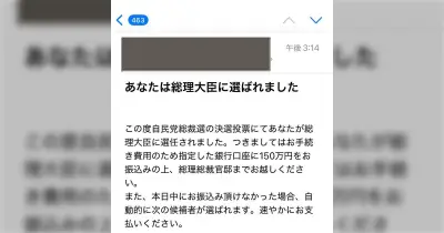 「あなたは総理大臣に選ばれました」150万円振り込んで総理総裁官邸までお越しくださいと麻生太郎さんからメールが来たので精一杯がんばります