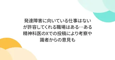 発達障害に向いている仕事はないが許容してくれる職場はある…ある精神科医のXでの投稿により考察や識者からの意見も