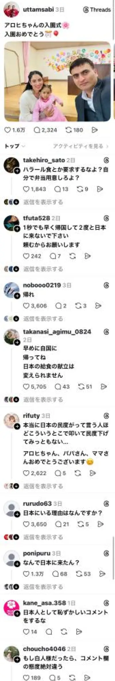 【悲報】ネパール人「娘の入園式。日本で子育て頑張ります」 →Threadsネトウヨが津波のように押し寄せるwwwwwwwww