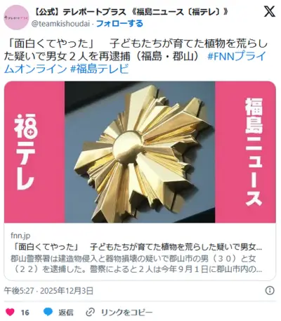 カップル「おwもwしwろwいw」小学校の鍵に接着剤、児童の鉢植え破壊、高校に猥褻文書掲示