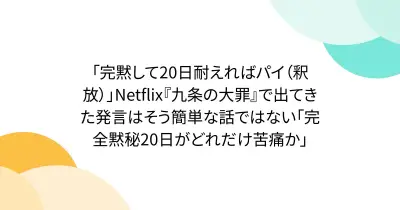 「完黙して20日耐えればパイ(釈放)」Netflix『九条の大罪』で出てきた発言はそう簡単な話ではない「完全黙秘20日がどれだけ苦痛か」