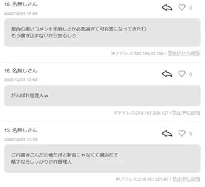【負け犬】荒らし「都合の悪いコメント全消しとか必死過ぎて可哀想になってきたわ。もう書き込まないから安心しろ」→実際の書き込みがこちらwwwww
