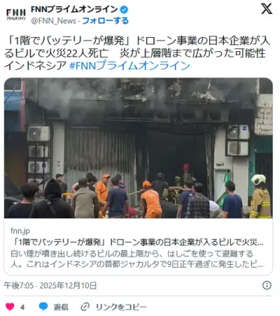 「1階でバッテリーが爆発」22人死亡、日本企業が入るビル 「激しい爆発音が聞こえた」