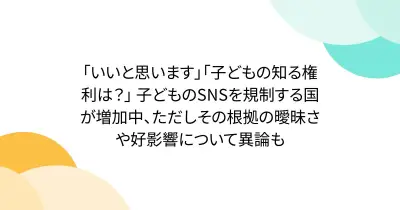 「いいと思います」「子どもの知る権利は?」 子どものSNSを規制する国が増加中、ただしその根拠の曖昧さや好影響について異論も