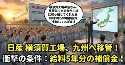 【速報】日産「横須賀工場の皆さん、移管先である九州工場に引っ越してくれたら給料5年分の補償金を支給してあげます」