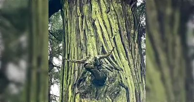 神社の祭祀で地元のおじさん達に「御神木に鹿おるから見てみー」と言われて見たら本当に鹿がいた!→「あまり良い感じを受けない...不穏」「鹿にも見えるけど悪魔にも見える」
