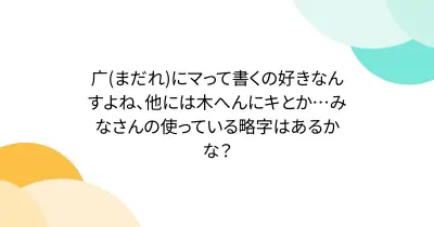 广(まだれ)にマって書くの好きなんすよね、他には木へんにキとか…みなさんの使っている略字はあるかな?