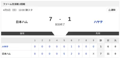 【試合結果】日本ハム2軍vsハヤテ 7-1|ファーム交流戦2回戦|個人成績|4/5