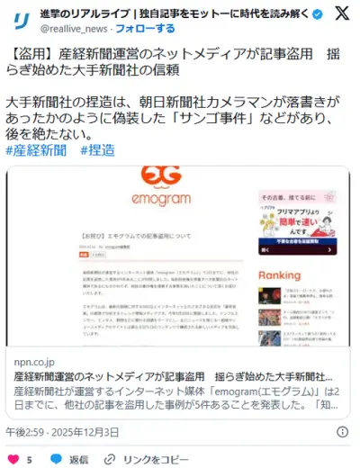 産経新聞運営のネットメディアが記事盗用 揺らぎ始めた大手新聞社の信頼