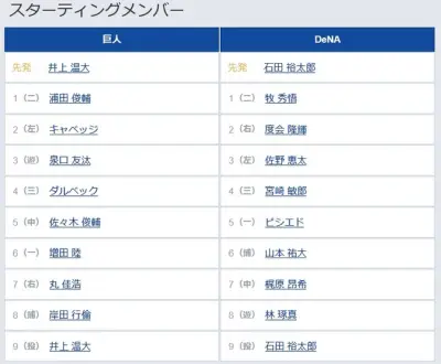 【巨人対DeNA2回戦】5(中) 佐々木 俊輔 7(右) 丸 佳浩