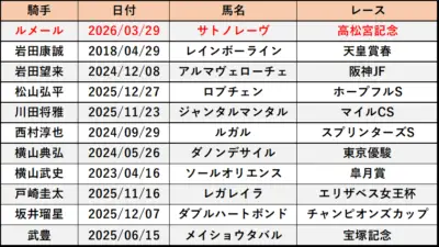 ジョッキー別最後のG1制覇がこちら
