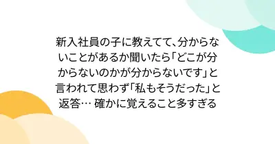 新入社員の子に教えてて、分からないことがあるか聞いたら「どこが分からないのかが分からないです」と言われて思わず「私もそうだった」と返答… 確かに覚えること多すぎる