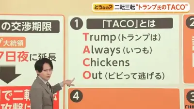 外国人「日本のテレビがトランプのTACOを説明してる…」