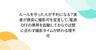 ルールを守った人が不利になる?演者が唐突に撮影可を宣言して、電源OFFの携帯を起動してからでは間に合わず撮影タイムが終わる理不尽