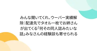 みんな聞いてくれ、ウーバー実績解除:配達先でタオル一枚でお姉さんが出てくる「何その同人誌みたいな話」みなさんの経験談も寄せられる