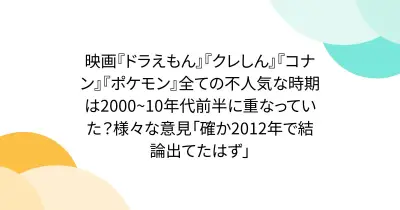 映画『ドラえもん』『クレしん』『コナン』『ポケモン』全ての不人気な時期は2000~10年代前半に重なっていた?様々な意見「確か2012年で結論出てたはず」