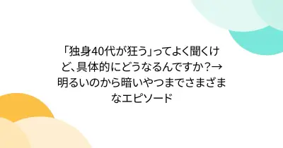 「独身40代が狂う」ってよく聞くけど、具体的にどうなるんですか?→明るいのから暗いやつまでさまざまなエピソード