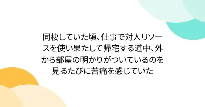 同棲していた頃、仕事で対人リソースを使い果たして帰宅する道中、外から部屋の明かりがついているのを見るたびに苦痛を感じていた
