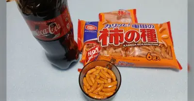 コーラに入れるピーナッツがなかったので「亀田の柿の種」で代用してみた… 普通にイケてるんだけど、アメリカ兄貴たちは許してくれるかしら?「早速魔改造」「日本のお家芸」