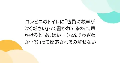 コンビニのトイレに「店員にお声がけください」って書かれてるのに、声かけると「あ、はい…(なんでわざわざ…?)」って反応されるの解せない