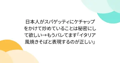 日本人がスパゲッティにケチャップをかけて炒めていることは秘密にして欲しい→もうバレてます「イタリア風焼きそばと表現するのが正しい」