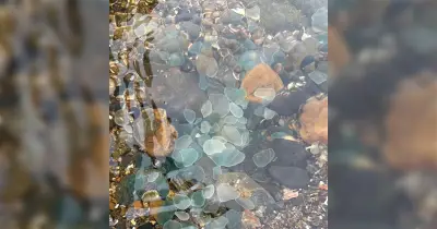 水辺にキラキラした石のようなものがコロコロと溜まっていて綺麗だった「ハクの鱗みたい」→シーグラスと言われるものらしい