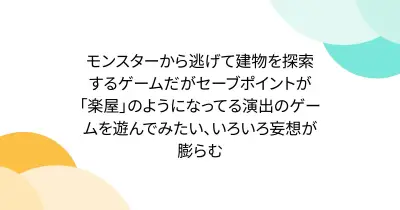 モンスターから逃げて建物を探索するゲームだがセーブポイントが「楽屋」のようになってる演出のゲームを遊んでみたい、いろいろ妄想が膨らむ