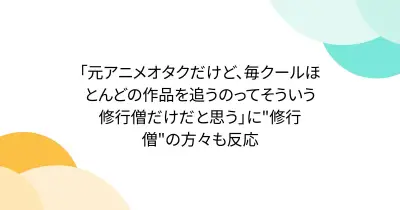 「元アニメオタクだけど、毎クールほとんどの作品を追うのってそういう修行僧だけだと思う」に"修行僧"の方々も反応