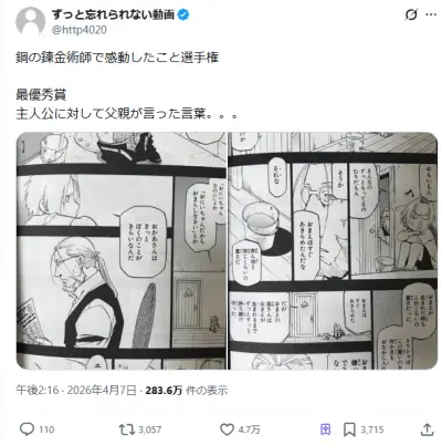 【画像】X民「鋼の錬金術師で一番感動したのがこのシーン」→何故かフェミに叩かれてしまう